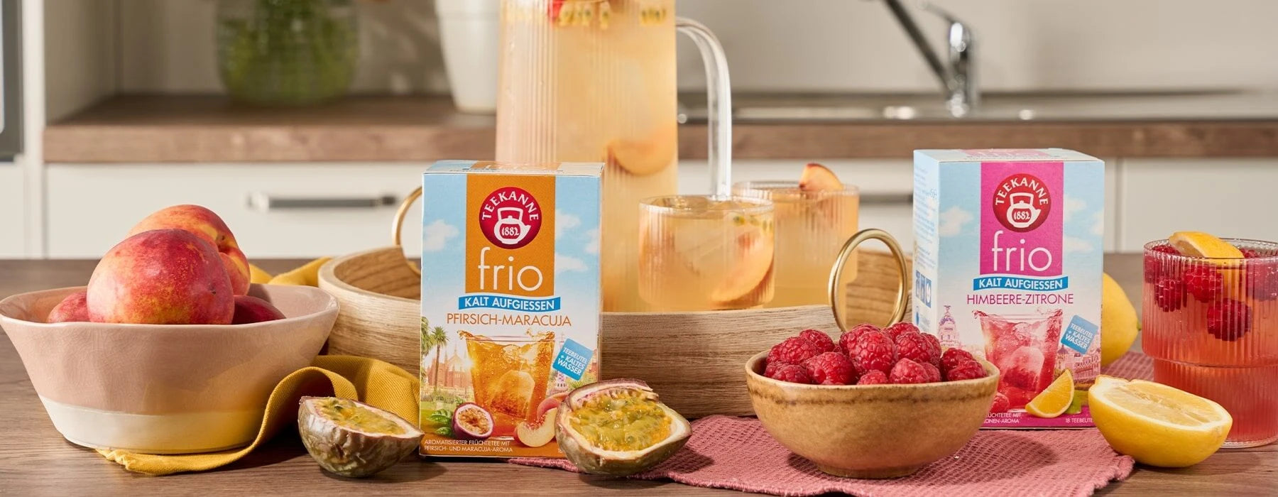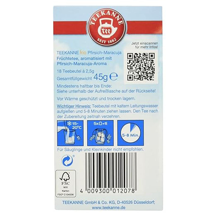 Lasa-te insotit de TEEKANNE frio Piersica-Maracuja intr-un vis insorit, unde piersica fructata si maracuja exotica se intalnesc. Pe langa aroma de piersica si maracuja, in fiecare plic se gasesc mere, macese, hibiscus.
