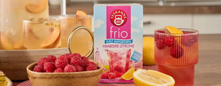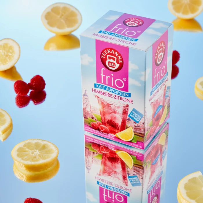 TEEKANNE frio Zmeura-Lamaie este un ceai de fructe racoritor, perfect pentru zilele calde de vara. Acest ceai special pentru preparare cu apa rece combina aroma proaspata si fructata a zmeurei cu nota acrisoara si revigoranta a lamailor, oferind o bautura delicioasa si energizanta.