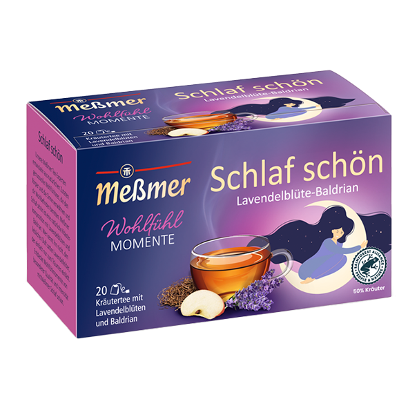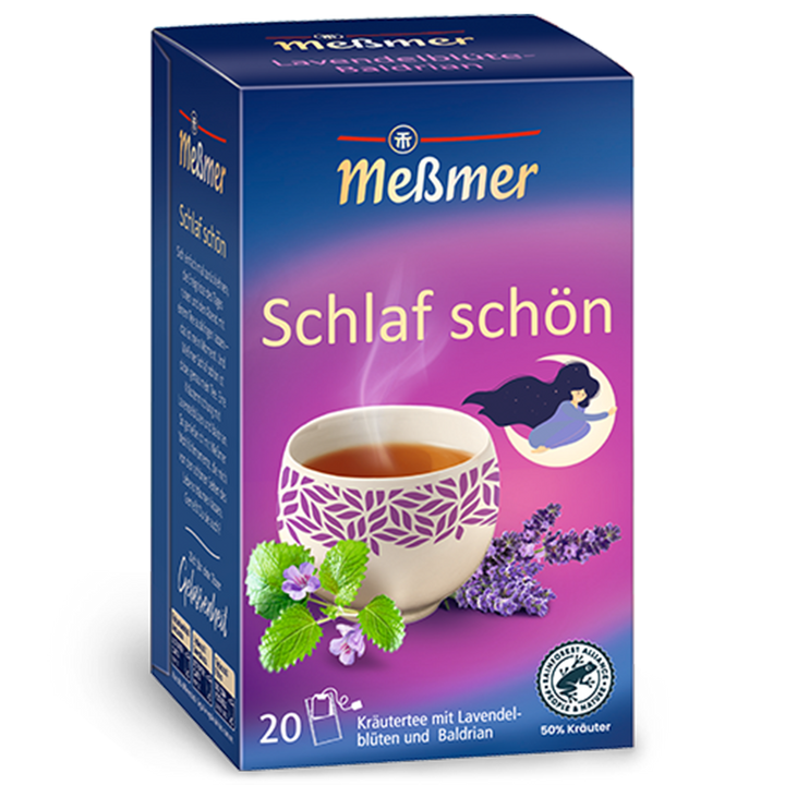 Pur si simplu sa te lasi pe spate, sa lasi evenimentele zilei sa se linisteasca si sa inchei seara cu o ceasca de ceai – acesta este momentul de relaxare. Meßmer Schlaf schön este un amestec de plante cu flori de lavanda si valeriana.