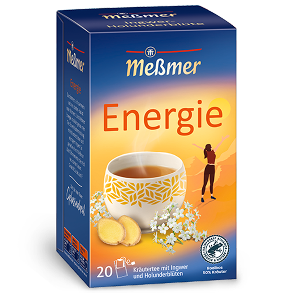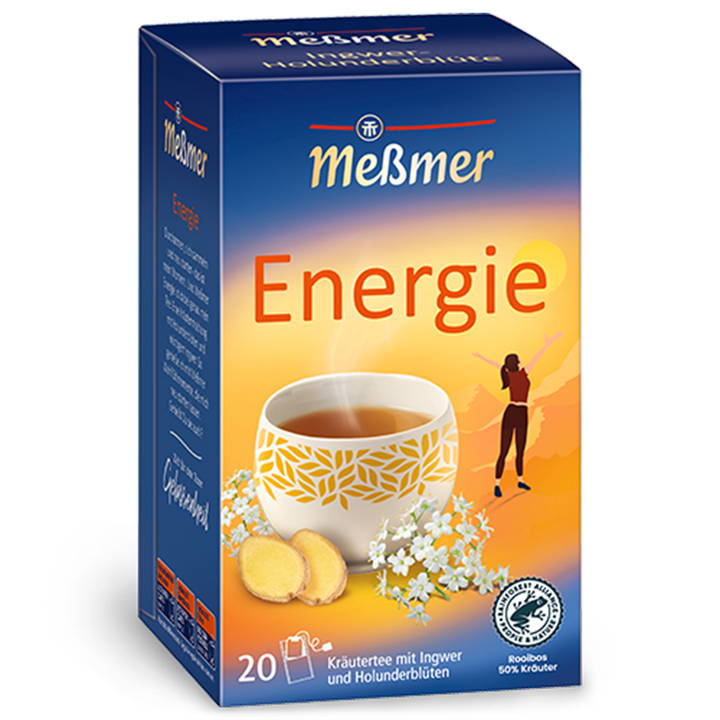 Respira adanc, aduna-te si porneste din nou – acesta este momentul tau. Meßmer Energie este un amestec de plante cu flori de soc si ghimbir condimentat.