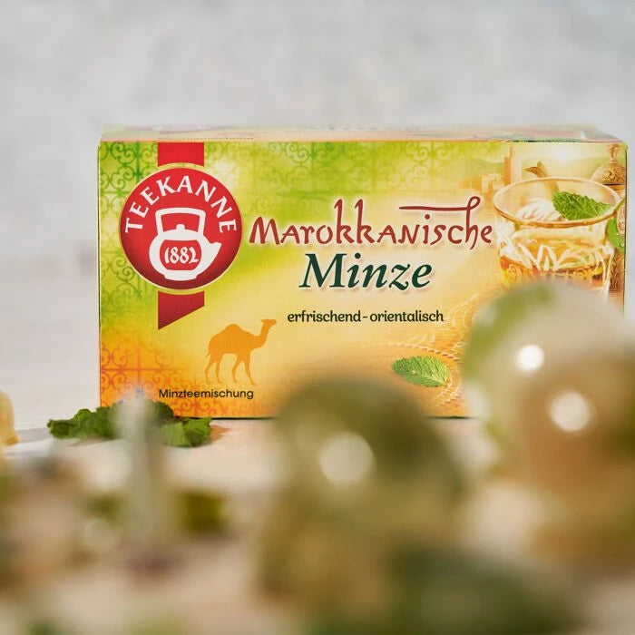 TEEKANNE Marokkanische Minze este un ceai de plante aromat, care combina menta marocana cu menta piperata pentru un gust autentic si racoritor, inspirat din traditiile nord-africane. Acest ceai te poarta intr-o calatorie senzoriala in lumea orientala, cu arome proaspete si revigorante.